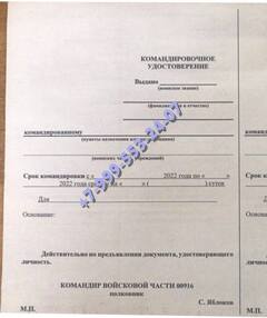 Заказать командировочное удостоверение военнослужащего в Калаче-на-Дону можно и по иным причинам, например, необходимо срочно ехать на учения или в зону боевых действий. В таком случае следует обращаться к руководству с заявлением. Если человек потерял, или испортил документы, он может обратиться в нашу компанию. Купить командировочное удостоверение военнослужащего с доставкой мы предлагаем недорого.